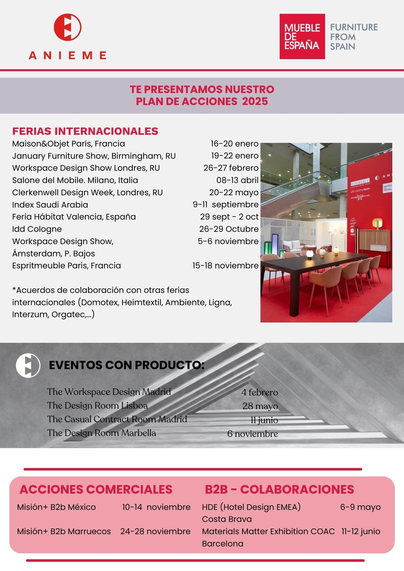 Riyadh, Colonia, Amsterdam, México, Marbella, Marruecos, Francia, entre otros, figuran entre los destinos que trabajaremos en el segundo semestre. Si quieres descargar el Plan de Acciones y Servicios completo de ANIEME para el año 2025, podrás encontrar el documento abajo 👇👇.