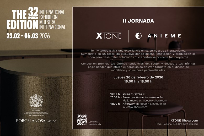 La visita tendrá lugar el jueves 26 de febrero, de 16.00 a 18.00 horas, con acceso también a la afterwork-party que se celebrará de 18.00 a 20.00 horas en el mismo showroom de XTONE en Villarreal.