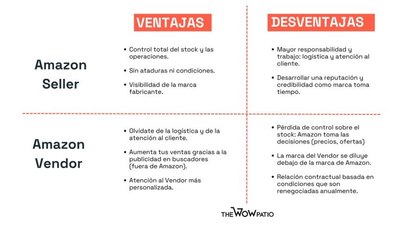 A diferencia del Seller, un Vendor de Amazon ya no tiene la propiedad y control total del stock (se lo vendió a Amazon a modo de proveedor). Esto significa que la empresa Vendor delega la responsabilidad total de la venta, envío y atención al cliente a Amazon tanto en la venta como en la posventa.