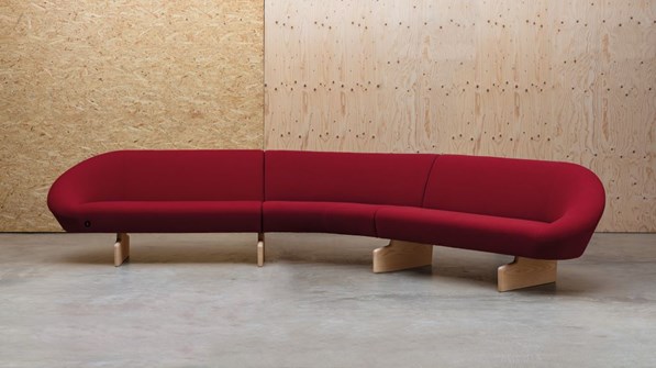 El sofá Giro Soft diseñado por Alfredo Häberli equipa el escenario cereza del pabellón de España