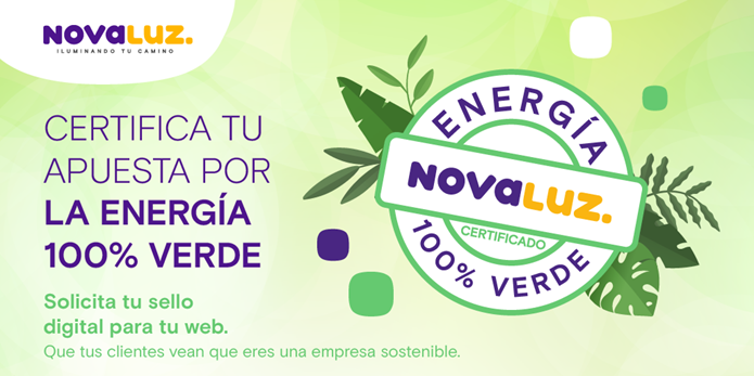 NOVALUZ, suministrador de “energía verde” procedente100% de fuentes energéticas eólicas españolas y especializado en pymes, ha creado un certificado responsable de energía 100% verde para incorporarlo a la web de todos sus clientes.