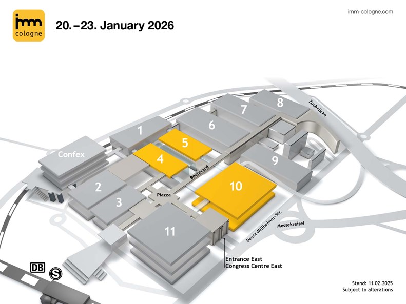 La feria imm cologne 2026 está en proceso de cambios y de cara a su próxima edición, ha concentrado su oferta. En esta ocasión, ocupará los pabellones 4- 5 y 10 del recinto ferial de Colonia donde se ubicará una oferta internacional procedente principalmente de 26 países. Entre ellos figuran: Austria, Bulgaria, Dinamarca, Francia, Alemania, Hong Kong, India, Indonesia, Italia, Malasia, Países Bajos, China, Serbia, Eslovenia, Ucrania, Reino Unido y Estados Unidos.